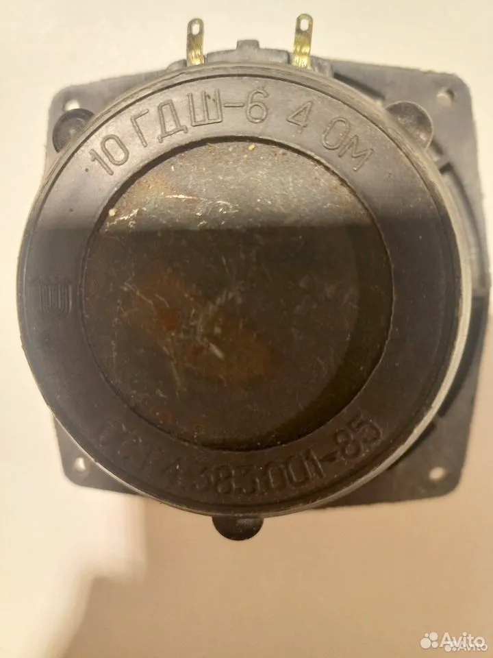 Головка электродинамического типа, широкополосная, круглая Ø100 мм. Устанавливалась в акустические системы 15АС-08А «Топільче». Корзина изготовлена из пластмассы, которая полностью закрывает магнитную систему. Диффузор изготовлен из бумажной массы, подвес пенополиуретановый и приклеен с нижней стороны диффузора. Центрирующая шайба тканевая. Пылезащитный колпачок выполнен из пленки (на фото отсутствует). Магнит кольцевой, ферритовый. Сопротивление 4 Ома. С пластмассовой рамой выпускался так же 2ГДШ-6-8. Каркас звуковой катушки – алюминиевая фольга.