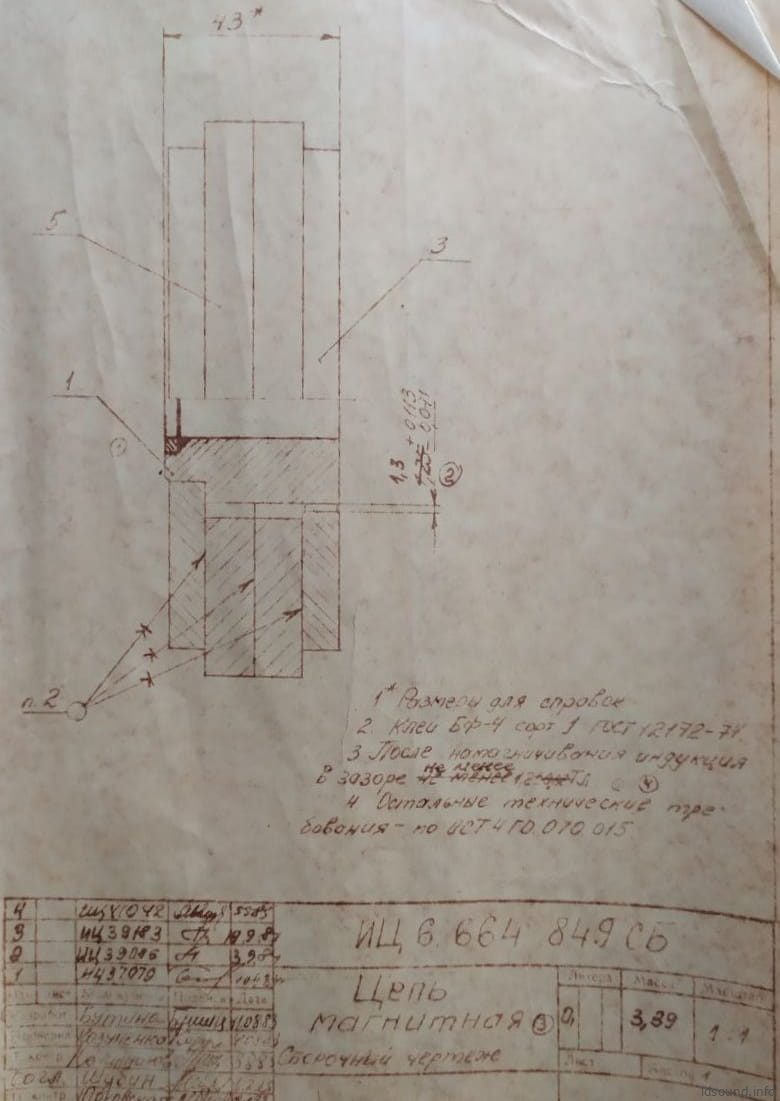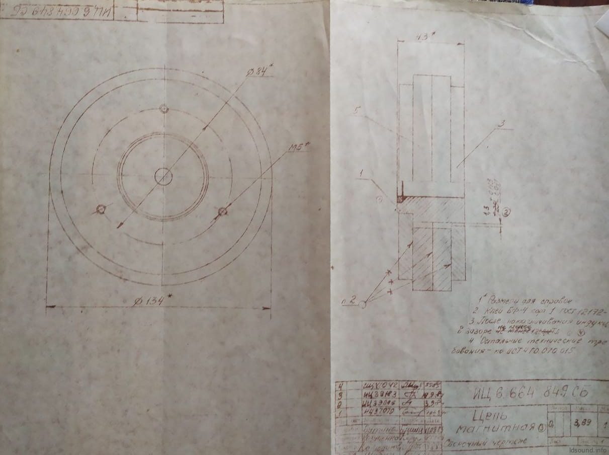 - Вся элементы цепи склеены клеем БФ-4, сорт 1. После намагничивания индукция в зазоре не менее 1,2 Тл. Общий вес магнитной системы – 3,89 кг. Верхний, нижний фланцы и керн изготовлены из стали марки СТ10.