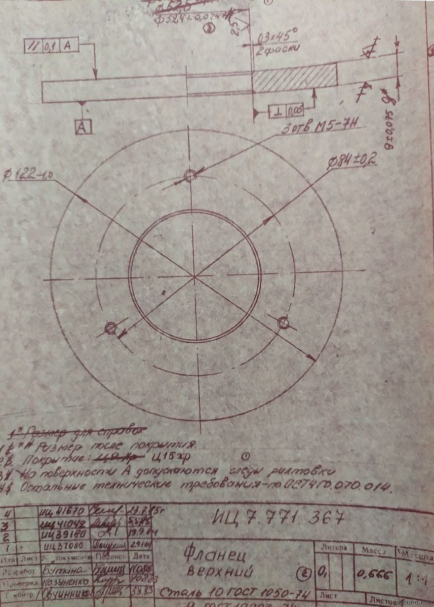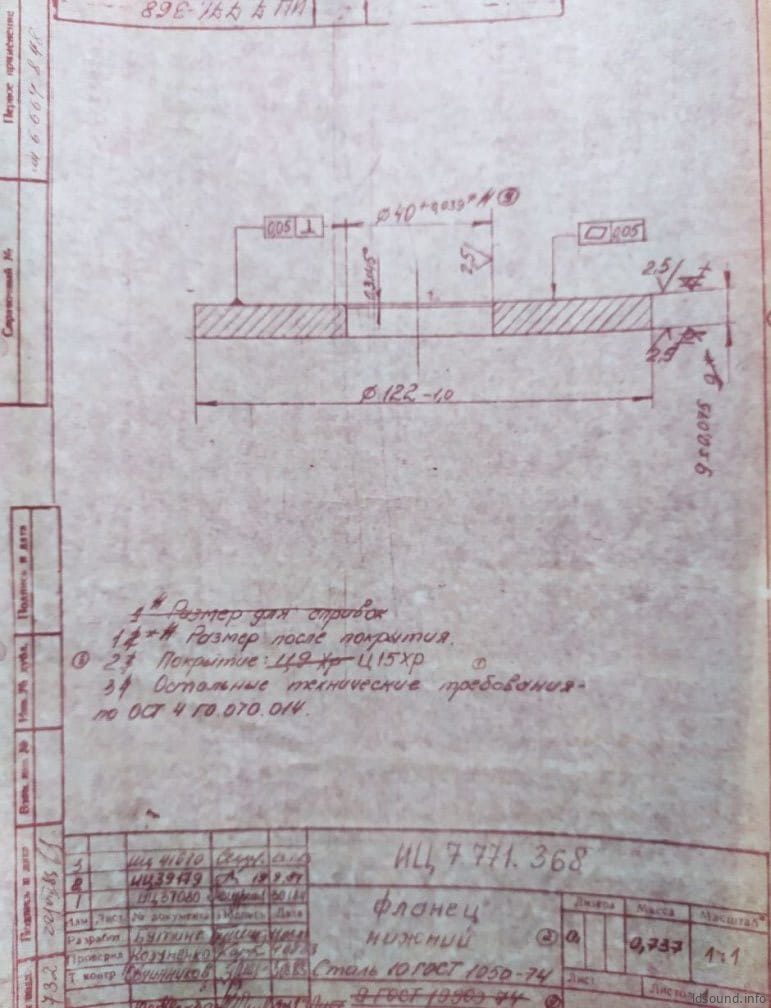 - Нижний фланец размером 122х40х9 мм. Деталь покрыта защитным слоем Ц15хр. Масса – 0,74 кг