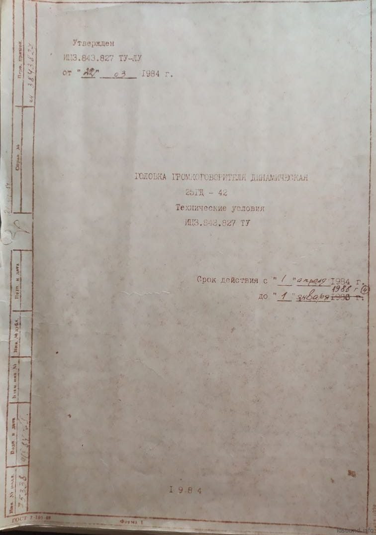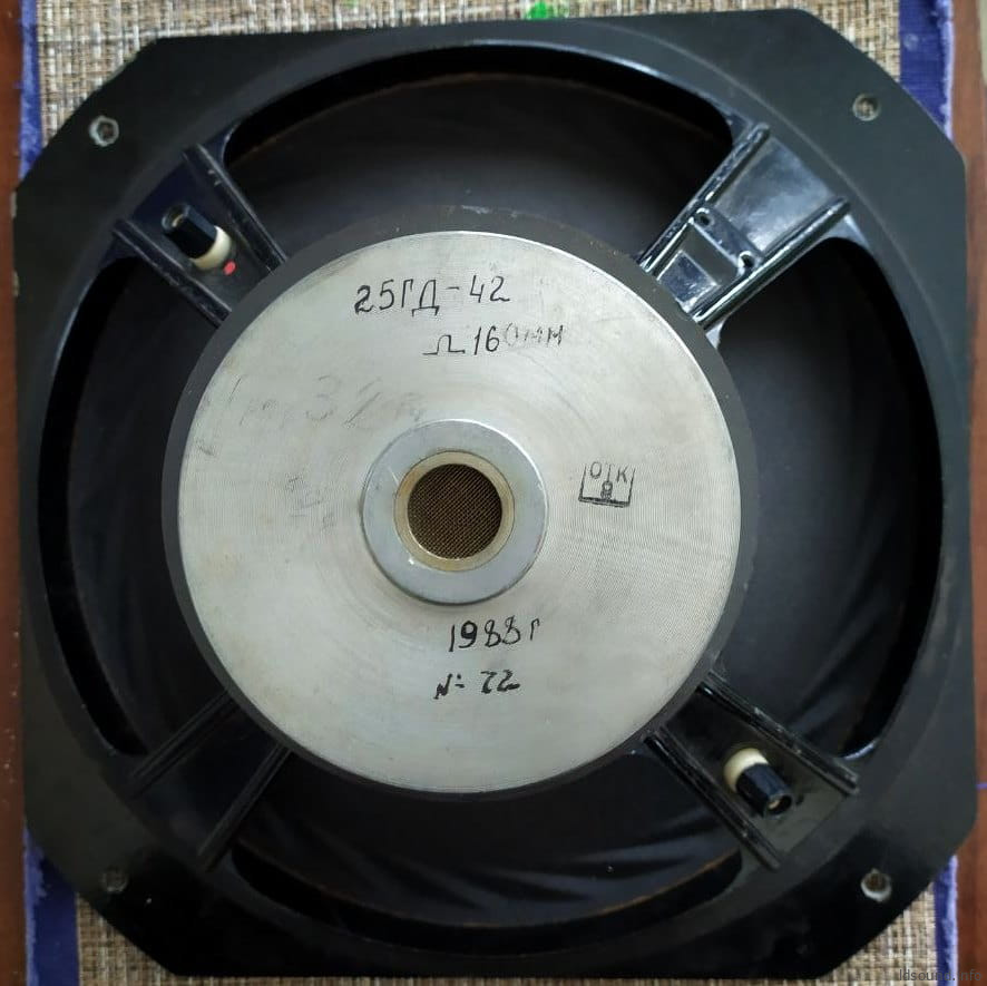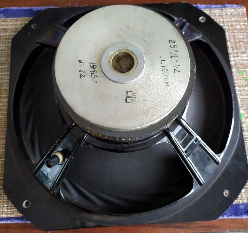 Головка громкоговорителя динамическая 25ГД-42 диаметром 12″. Выпускалась ВНИИРПА в 1987 году ограниченной партией около 500 штук. Устанавливалась в акустическую систему АСП-6, в двух вариантах – в металле и в дереве. АС использовались для замены звукового оборудования в Кремле. Проект курировала Ирина Аркадьевна Алдошина.