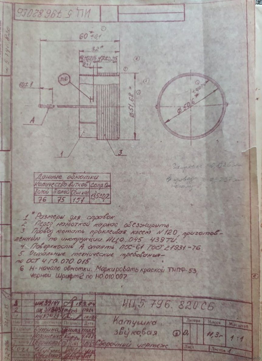 - Катушка намотана в 2 слоя круглым медным проводом. При намотке использован клей №120 приготовленный по инструкции ИЦО.045.439ТИ.