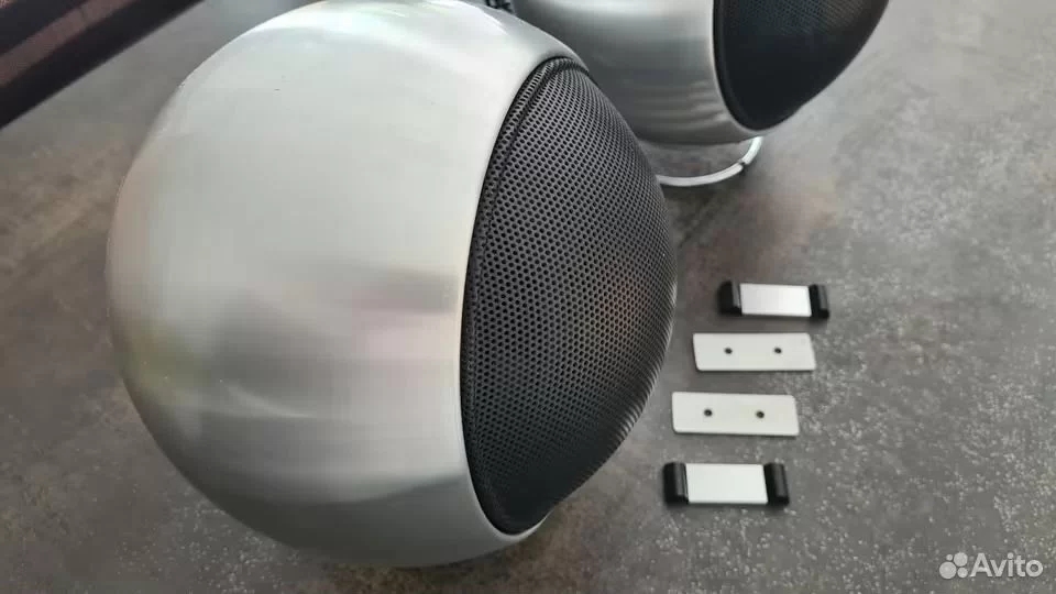 Корпус изготовлен из алюминия в виде сферы. Динамическая головка закрывается черной металлической сеткой. Выход АС выполнен через шнур длинной 4 м с разъемом на конце “точка-тире”. Корпус устанавливается на специальную подставку из хромированного стержня, благодаря которому его можно наклонить в любое положение.