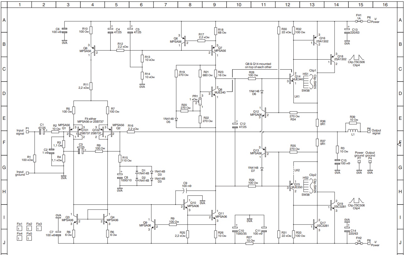 Тут важна не только схема. Нужна практическая реализация. Я как то приводил наглядный пример, как мною разработанная схема отказалась стабильно работать на заводской плате. Те же элементы тут же были переставлены в свою плату и все заработало отменно. Кстати работает уже более 5-ти лет. Нередко создается образец серийного варианта изделия, а потом дополнительно вносят элементы для стабильной работы. В моих же вариантах отрабатывалось именно взаимное расположение элементов. Задача – получить минимальные соединительные расстояния. Именно минимальные расстояния и позволяют работать на высоких частотах. Если схема будет больших размеров, то на рабочих частотах образуются резонансы, от которых не избавиться. Как я предполагаю изначально – именно поэтому и происходит ограничение по мощности. Дальнейшее ее (мощности) увеличение как раз и ведет к тому следствию, что происходит сужение полосы. Обратился к специалистам по ВЧ технике. Вопрос был прост: “почему эта схема, что перед ними работает на частотах, с которыми не работают серийные модели?” Поверьте, я сам тогда хотел это объяснить. Свой взгляд естественно не говорил. Ответ был однозначен – топология платы выполнена с соблюдением подходов к ВЧ технике. То есть – одна и та же схема ведет себя по разному в зависимости от качества (грамотной разводки элементов) монтажа. Иного объяснения я себе найти не мог. Ведь ничего изысканного использовать не пришлось. Все, что мне было нужно, было известно еще в 70-е. Потому то и пришел к выводу, что УНЧ больше 30 Вт строить не нужно. Дальнейший рост мощности неизбежно сузит полосу. А мне нужна была полоса усиления не менее 1 МГц. То есть граница единичного усиления (применительно к ОУ) выше 10 МГц. При безупречной стабильности меня все устроило.
